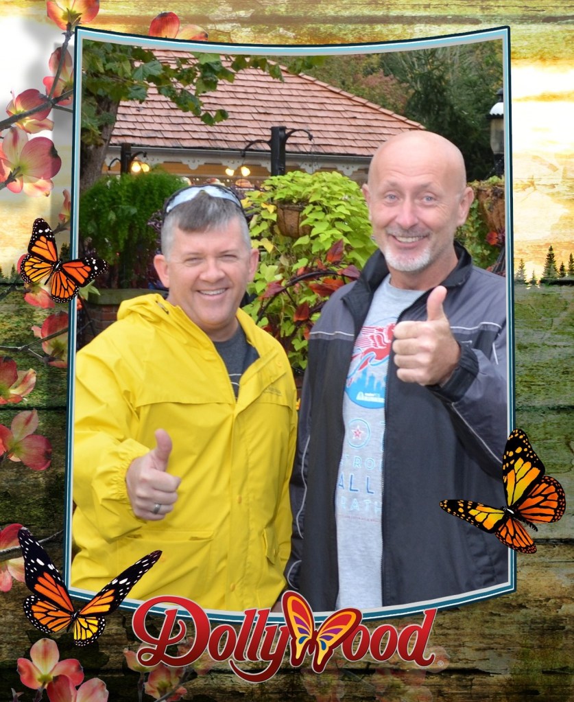 A highlight that week was our visit to Dollywood, which is in Sevierville, about 20 minutes from Gatlinburg. The weather that day was a little rainy but mostly just partly cloudy, and we headed to the park to go all in on Dolly— fortunately on a weekday, when we had a better chance of avoiding crowds and long lines.