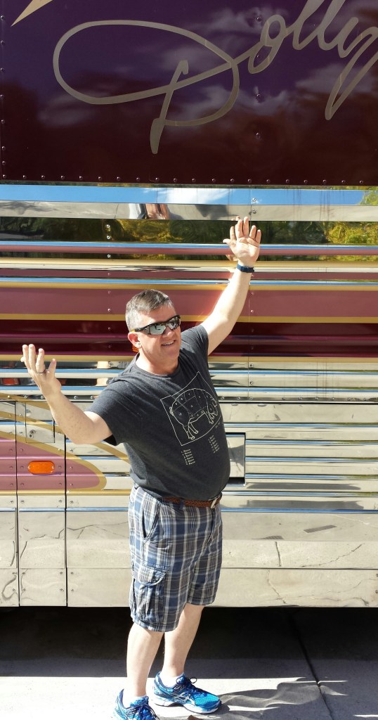 Once inside the park, we made a beeline for the museum, which did NOT disappoint! Her former (highly customized) tour bus was parked outside, so we waited patiently in line to climb aboard when the attendant gave us the thumbs-up. A few minutes later, we were in Dolly’s mobile world: seats and bunk beds for the tour members, a cozy bedroom for her, and a few wigs, of course. The attendant told us the bus had been retired a few years earlier after hauling Dolly and team around the country for about 250,000 miles.