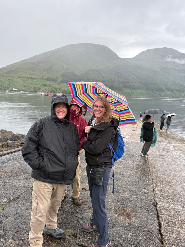 We departed Glasgow and headed to Loch Lomond, about 30 minutes outside the city and at 24 miles long the largest lake in Great Britain by surface area. We parked in Luss, a charming former mining village on the shores of the loch, and had about 30 minutes to stretch our legs and explore the area. Ron and I wandered around the village, noting the lovely cottages built for mine employees, then walked to the dock for our photo opp.