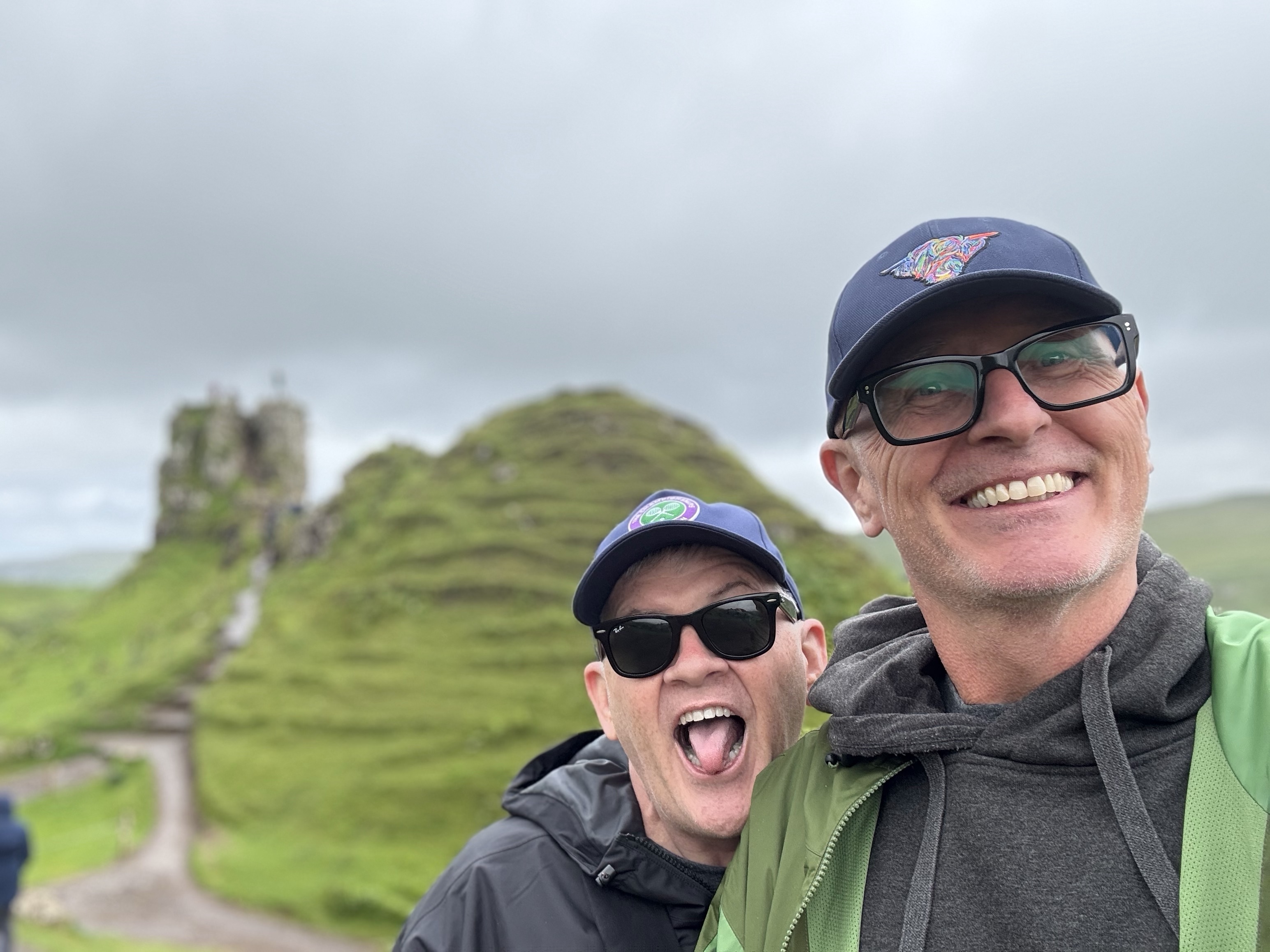 Next it was on to Faerie Glen (nowhere near Faerie Pools) for a pretty stout hike up to the top of an outcropping and photos of (more) sheep. Thank goodness that we followed Ron’s suggestion and purchased hiking boots — my Merrells and his Keens came in very handy the entire trip!