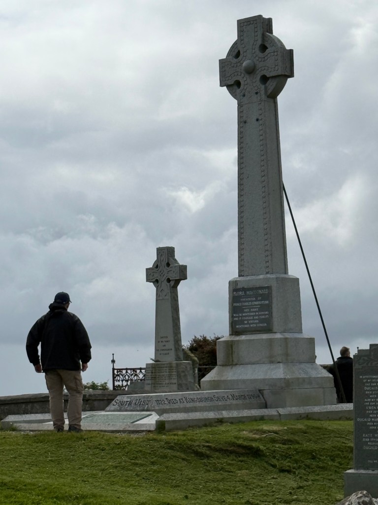 After a handful of well-timed curses, we swung around to the Kilmuir Cemetery. Asking Andrew (our guide) for a little insight, he happily told us the story of Flora MacDonald, who aided Bonnie Prince Charlie by hiding him as he was attempting to flee from government troops following his defeat at the Battle of Culloden. Upon her death in 1790, she was buried in Kilmuir Cemetery. In honor of her efforts in the escape from capture of Bonnie Prince Charlie, a tribute memorial was erected in honor of her efforts.