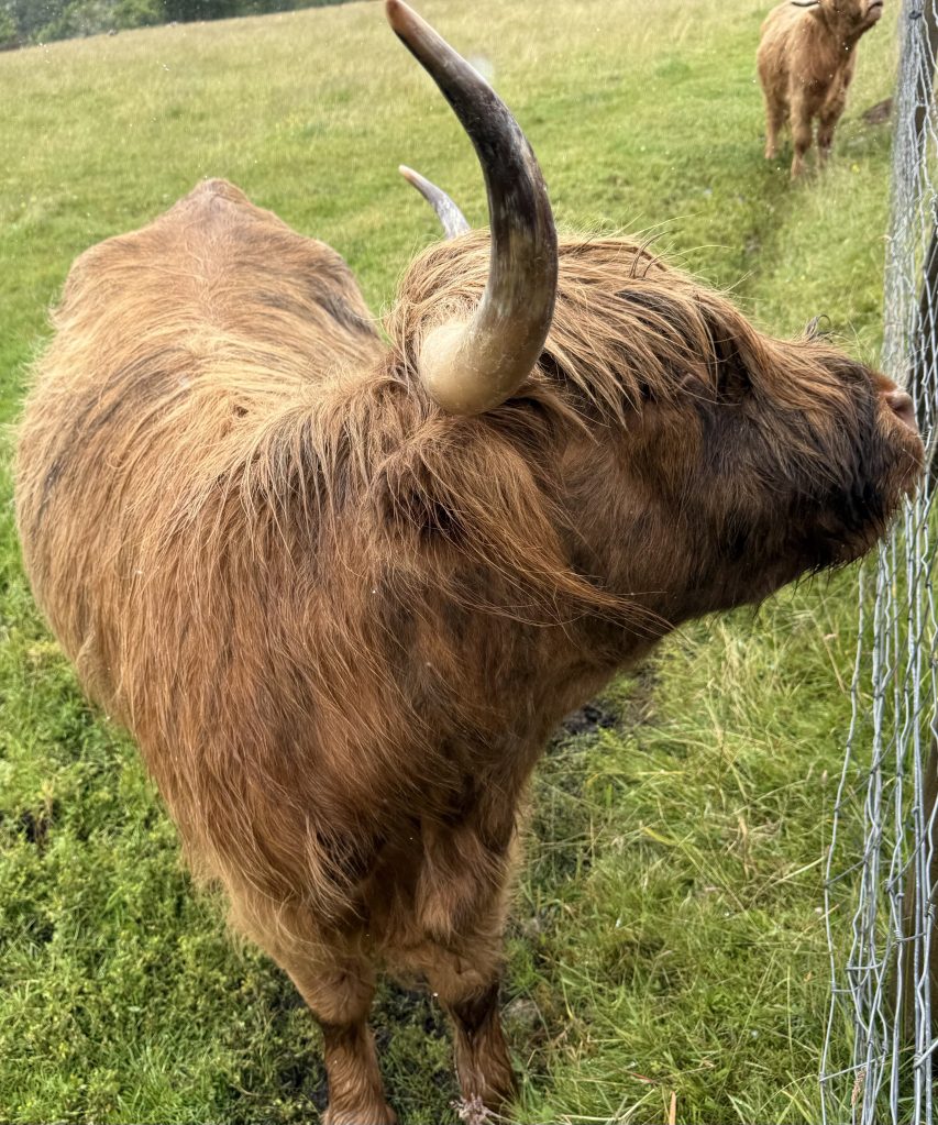 Quickly dispensing bags of carrots to our bus mates, everyone joined the wet and wooly beasts along the fence line, squealing excitedly as the cows exchanged carrots for a bit of head-scratching. Later on in the van, as I pulled out a pack of snack crackers to munch on, I was reminded of the cows when the scent of our Highland friends smacked me in the face, forcing me to forego the bite…..all in all, not the worst experience that someone on one of Andrew’s tours has had (Feel free to ask about the Ladies in White sometime.)!