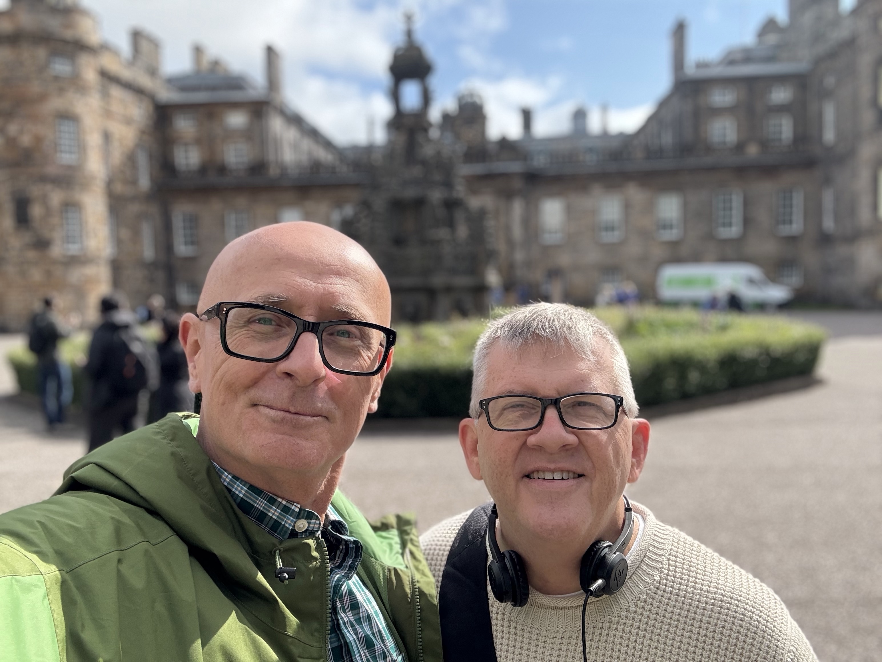 We were up early to visit Palace of Holyroodhouse, the Edinburgh residence for the British Royal Family. Holyroodhouse is a working palace; King Charles III had been in residence a week or two before. We appreciated seeing the fascinating public rooms: the Great Stair, a hand-turned staircase with beautiful frescoes on the ceiling; the Dining Room; the Great Gallery, which can be turned into a dining hall that will seat 400; various bedchambers, including one for Mary, Queen of Scots; the ruins of Holyrood Abbey; and the beautiful garden outside the palace.