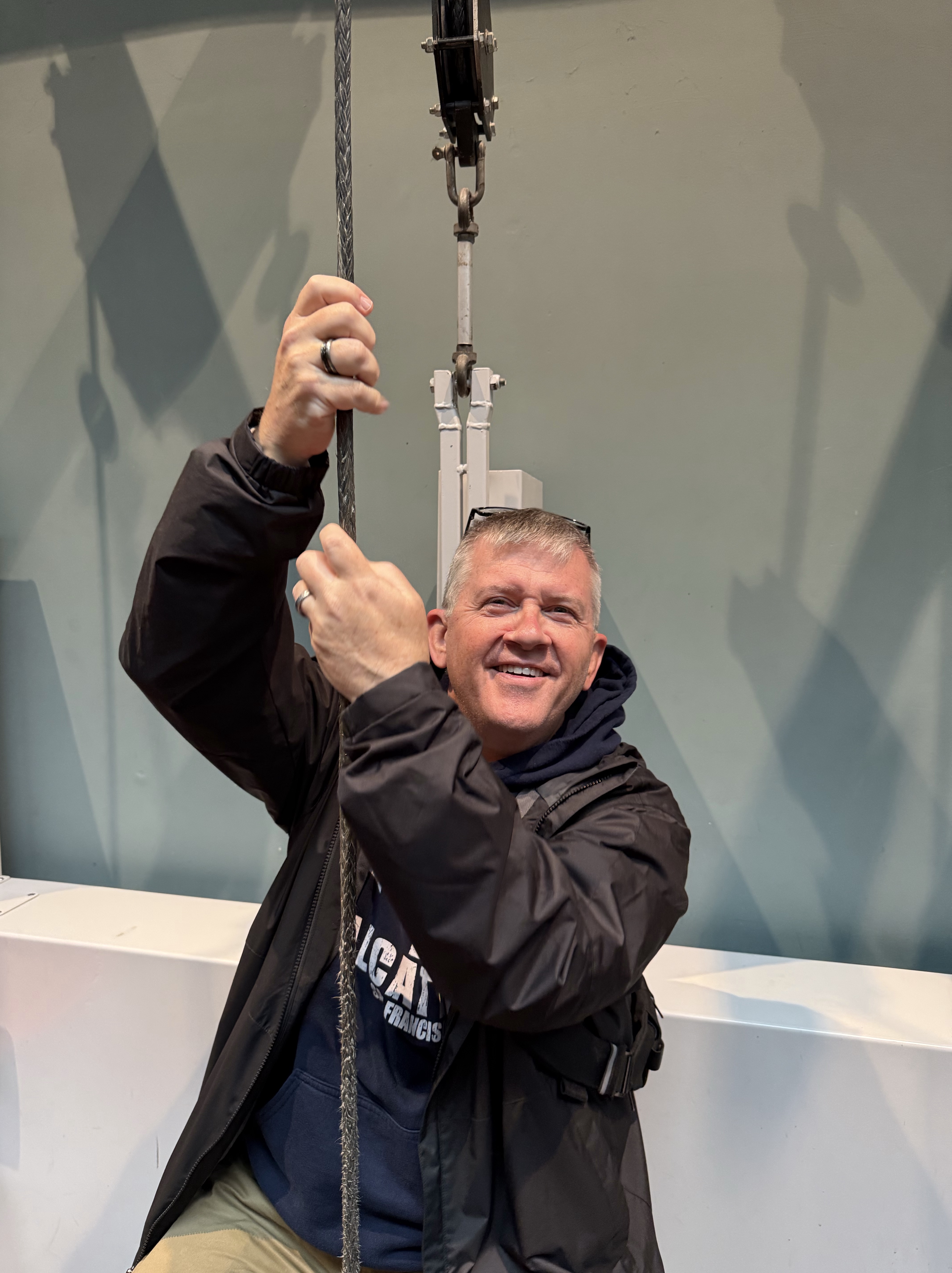 Seeing Kirk relax and enjoy the nooks and crannies of the museum as we flowed through the hallways was great. At one point he even climbed into a rig to check a “simple machine” exhibit based on pulleys and weight distribution. I refused to climb aboard but think we learned a valuable lesson nonetheless…..we need to sign up for a Pilates class when we get back to Dallas!